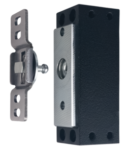 Esta cerradura magnética para gabinete se puede montar en la parte delantera o lateral con puertas y cajones batientes o corredizos, y su placa de armadura se ajusta a la alineación de la puerta.