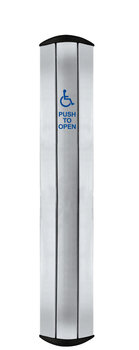 Columna™ Los interruptores de placa de empuje tienen un acabado de acero inoxidable cepillado que también combina Postes de montaje (bolardos) de acero inoxidable de 42" de alto y 48" de alto de Camden.