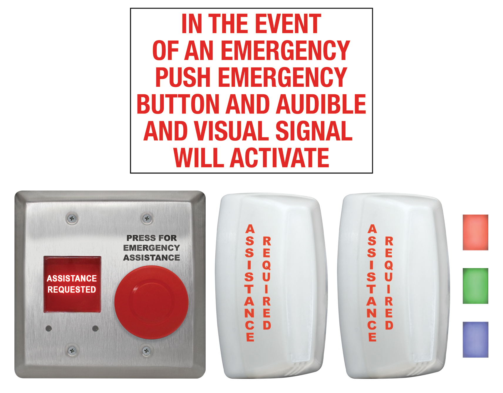 Anunciador LED de un solo elemento con sirena ajustable 'ASISTENCIA SOLICITADA'.;
