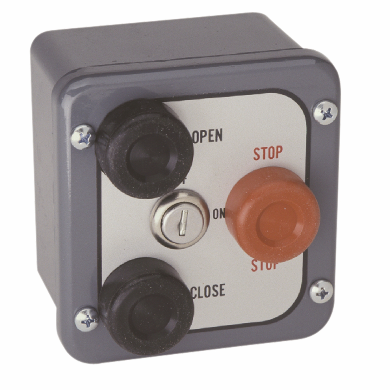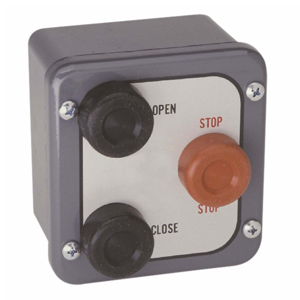 3 botones, ABRIR/CERRAR/DETENER, NEMA 4, clasificación UL/CSA, 3 A @ 240 VAC