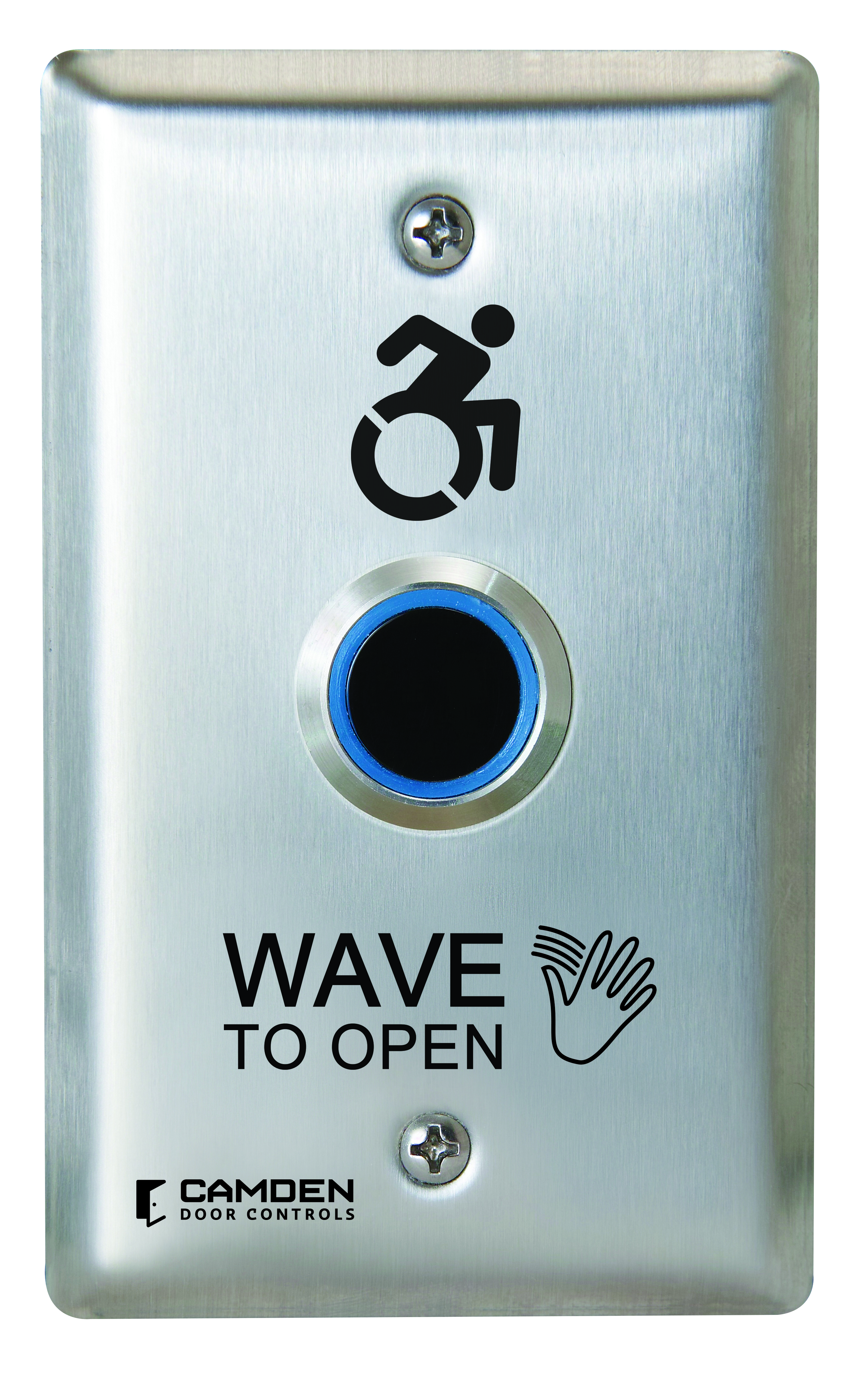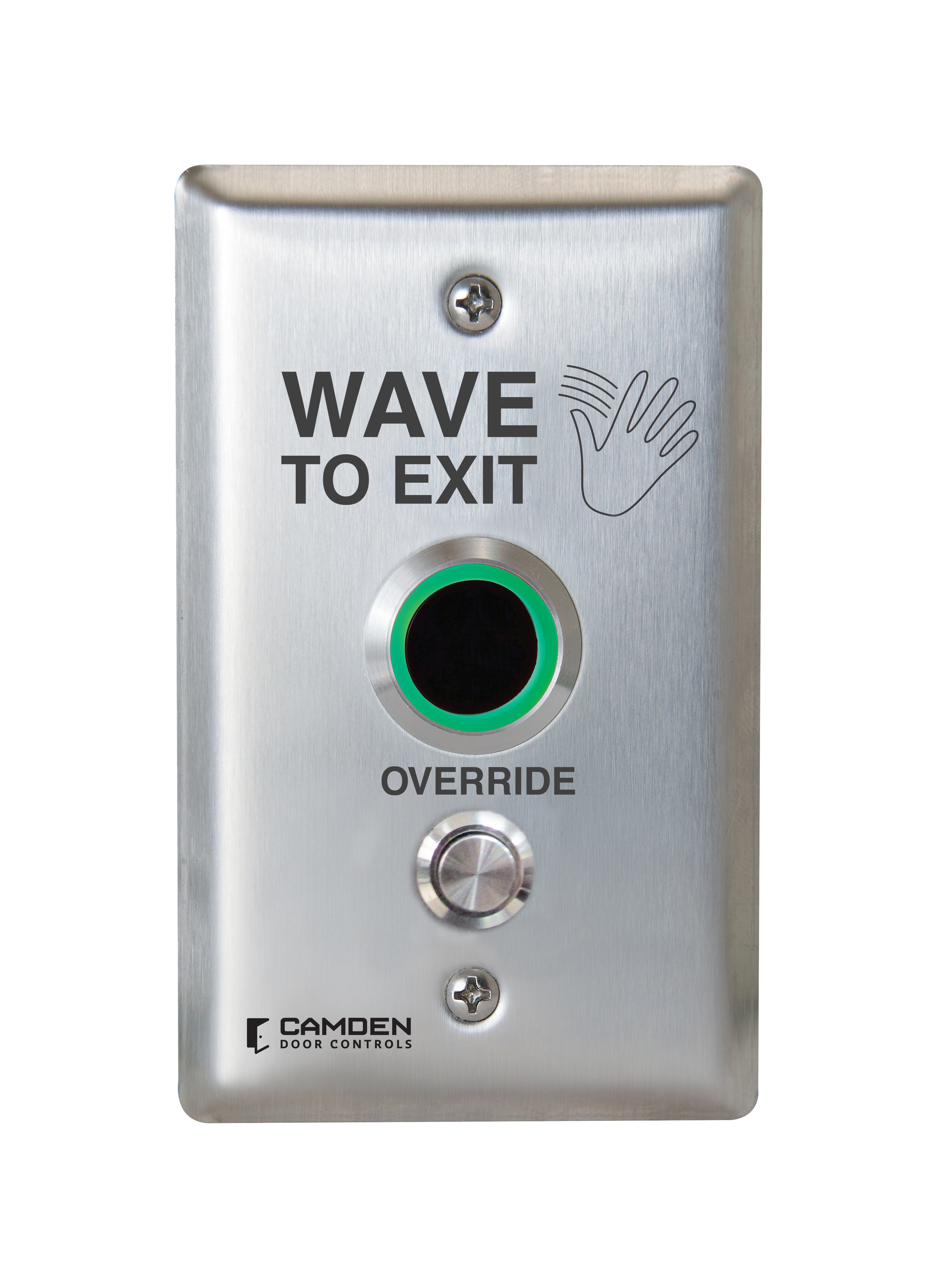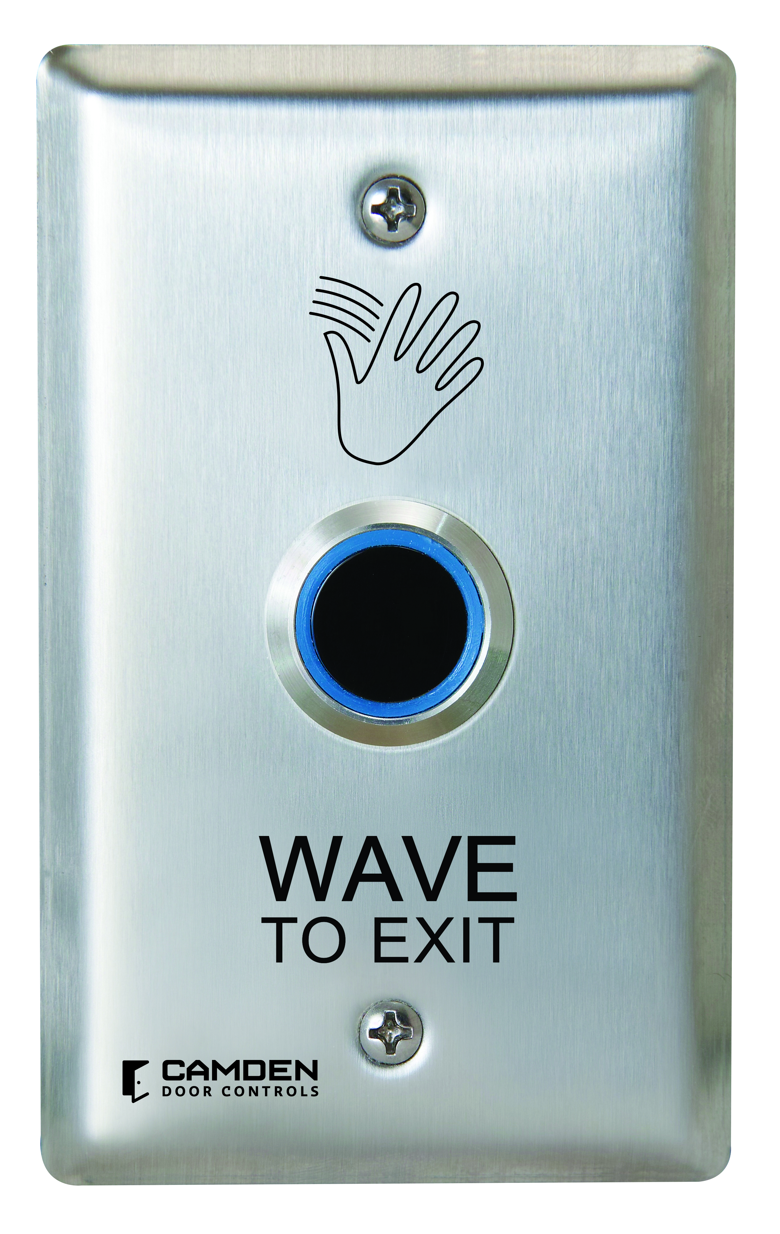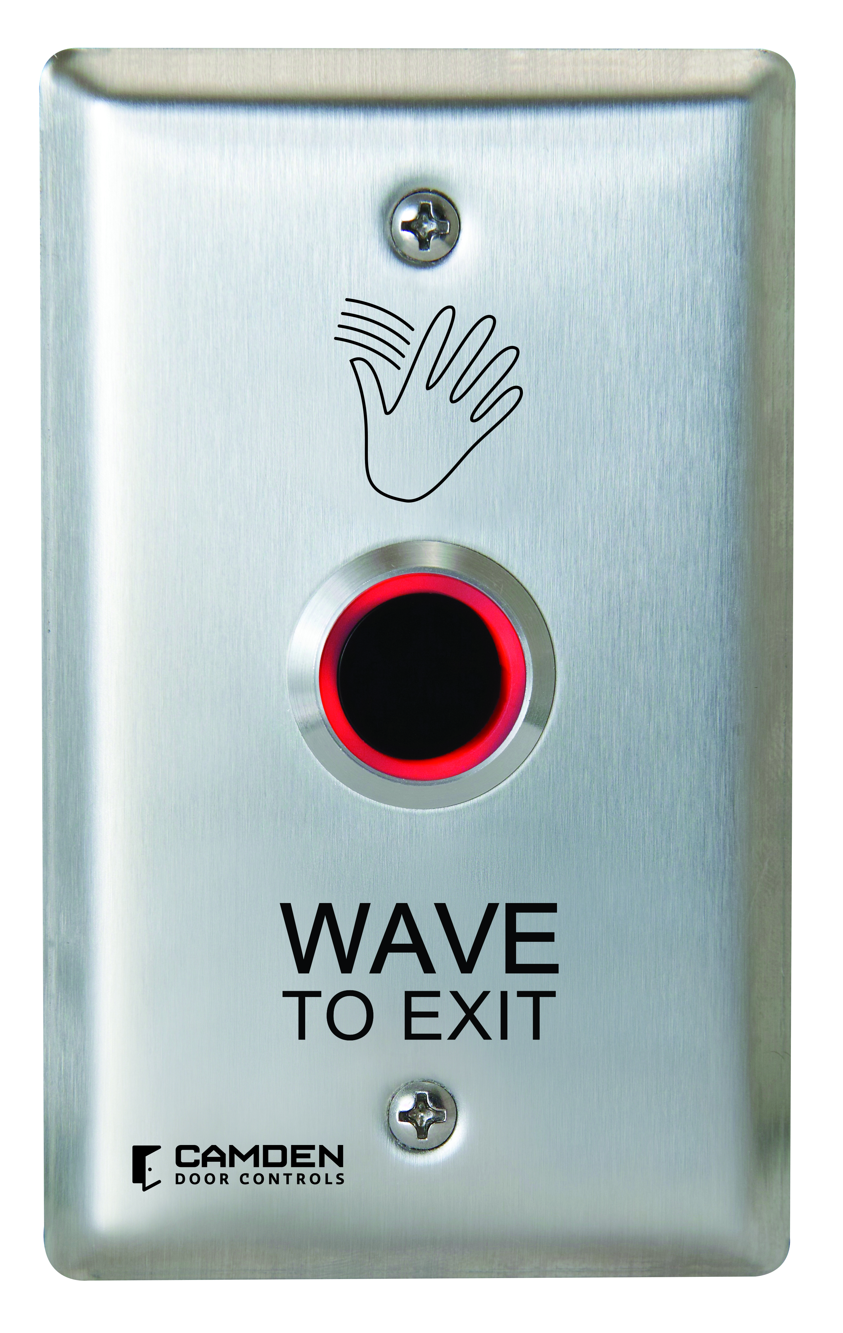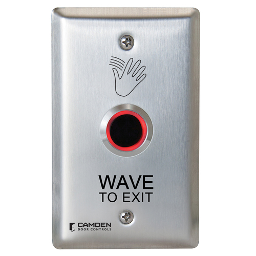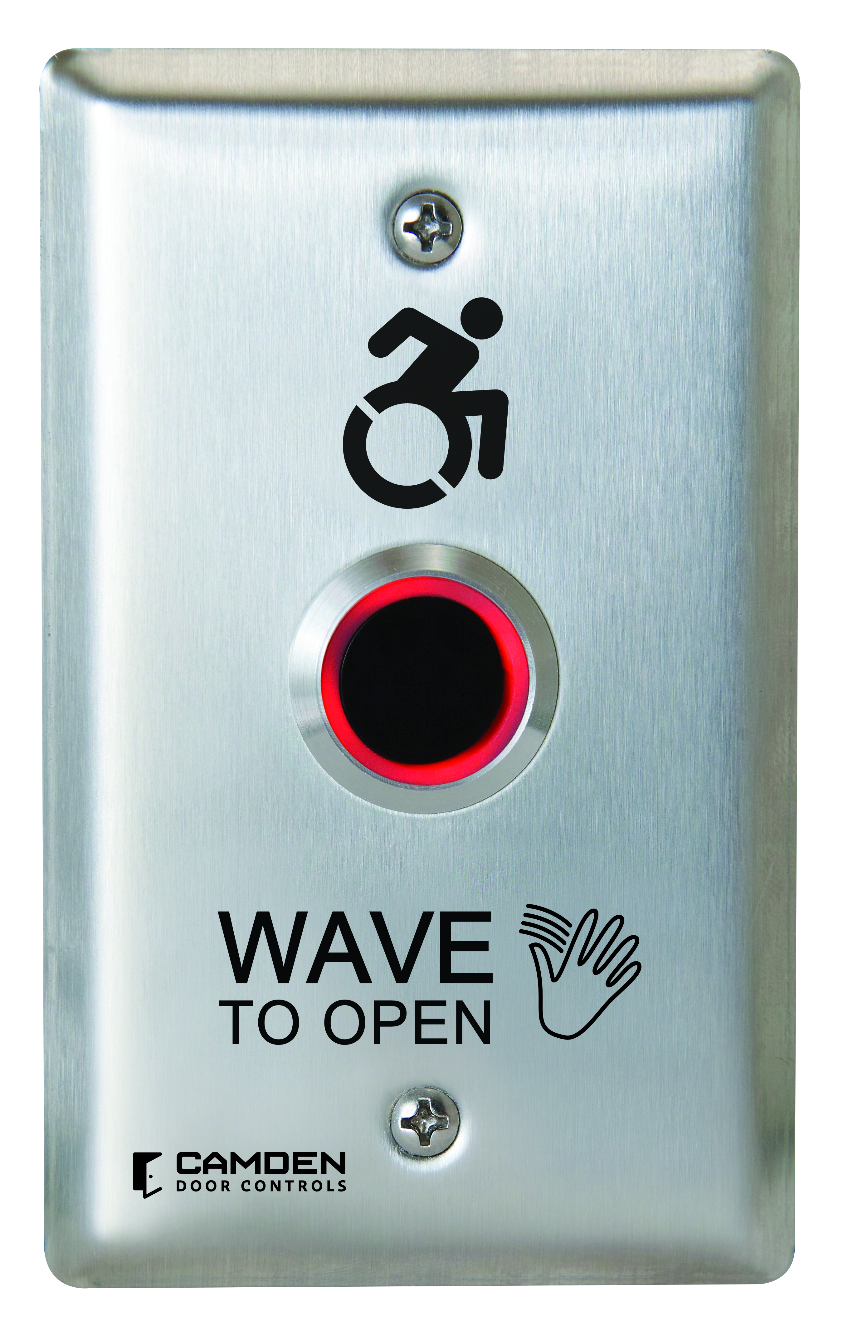 Los interruptores sin contacto Camden ValueWave™ 12/24 VDC con 1 relé tienen clasificación IP 65 para uso en interiores/exteriores, ideales para su uso en sistemas automáticos de control de puertas/accesos.